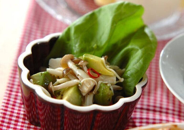 シメジ、白舞茸、エノキ、アボカドも入った具だくさんのマリネのレシピ。さっぱりとしていて、そして旨味もあるマリネ液がきのこによくからみ、アボカドのミルキーな食感もよく合います。冷やして食べると一層おいしい一品で、手軽につくれるのもうれしいポイント。前菜や副菜におすすめです。