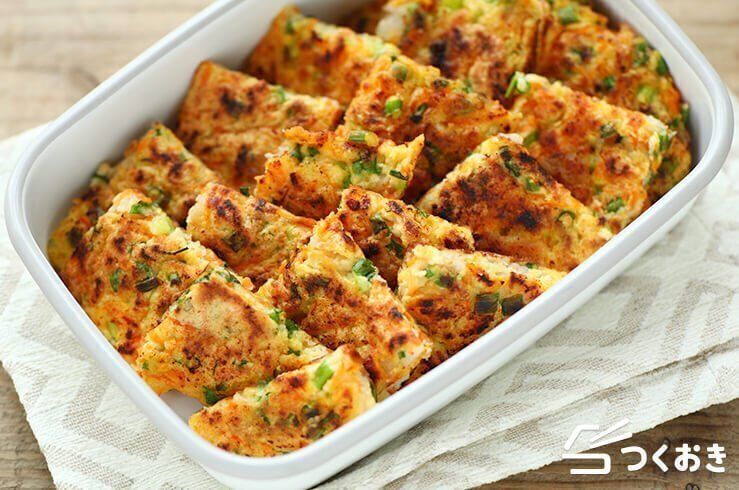彩り鮮やかなチヂミに、おからを入れたヘルシーなレシピ。最後にごま油を入れると、カリッと焼き上がります。冷凍保存も可能なので、つくり置きしておくとお弁当のおかずなどに便利ですよ。