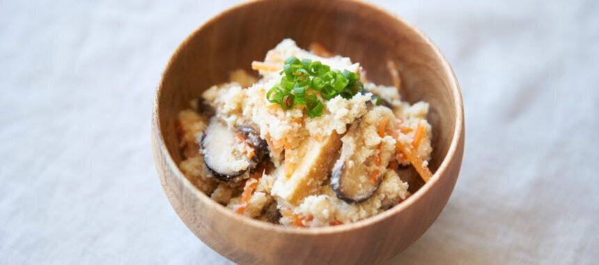 だしがしっかりしみ込んだ、おからの炒り煮です。厚揚げやしいたけを加えれば、ボリュームが出て満足感もアップします。15分程度で手軽につくれるので、いそがしい日の副菜にもおすすめ。