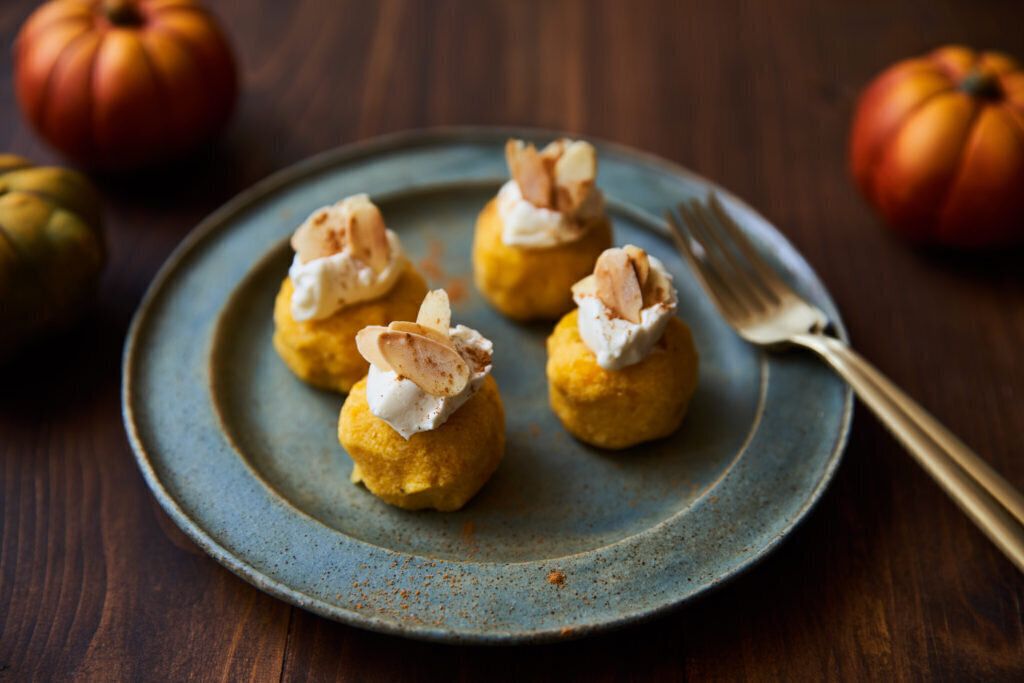 おからとかぼちゃを丸めて、マスカルポーネチーズをトッピングしたサラダレシピ。見た目もおしゃれでかわいらしいフォルムなので、ホームパーティーの前菜にもぴったりです。