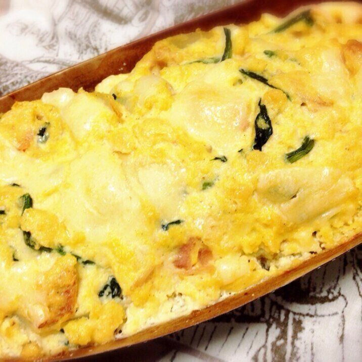 旨味とコクのある焼き鳥の缶詰とおからを使ったグラタンです。すでにタレがついている焼き鳥の缶詰を使うことで、少ない調味料で味が決まります!またおからに牛乳を加えると、しっとりとした口当たりになり食べやすくなります。ぜひパンの上にのせて召し上がってください。