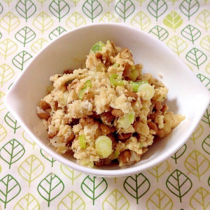 ネバネバの納豆におからを混ぜ込むだけで、あっという間に完成する一品。めんつゆを使うので、味も簡単に決まります。いつもの納豆に変化をつけたいときや、おからが余ったときの消費レシピとしても◎。