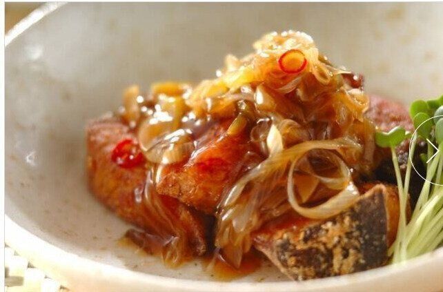 カラッと揚げたブリに、白ネギをたっぷり入れた中華風のあんをかけた一品です。ブリにも下味をしっかりとつけているので、食べた瞬間に旨味が口いっぱいに広がります。