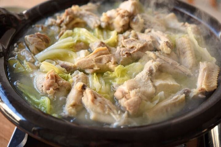 手羽元のほかに、手羽先、鶏もも肉を使った水炊きのレシピ。さまざまな鶏肉から出るうま味が、鍋全体に広がりますよ。肉だけでなく、野菜もしっかりとれるのがうれしいですね。