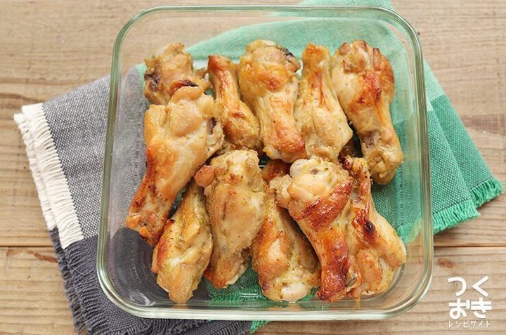 手羽元を調味料に漬けて焼くだけで完成する簡単レシピです。鶏手羽元をオーブンで焼くと、後日温め直してもジューシーな仕上がりに。作り置きしておくと、いそがしい日のおかずに重宝します。