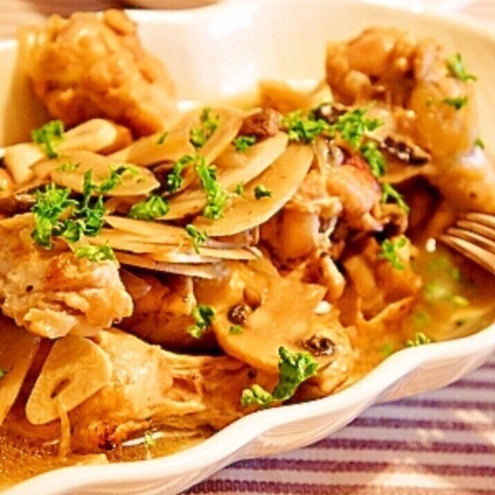 お酒のおつまみにぴったりな、手羽元とゴボウの白ワイン煮。ボリューミーで見た目も華やかなので、夜ごはんのメインはもちろん、おもてなしにもおすすめ。子どもから大人まで喜ばれる一品です。