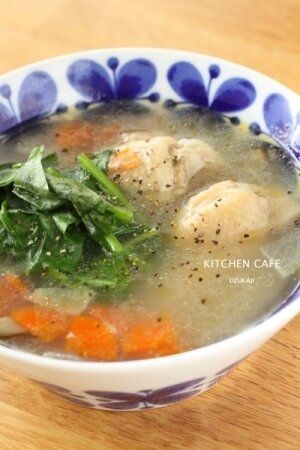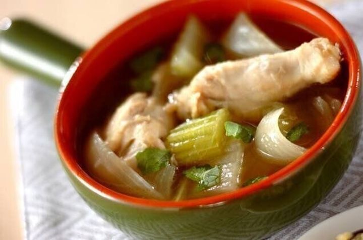 たっぷりの玉ねぎ、にんじん、セロリなどの香味野菜と一緒に煮込んでつくる手羽元入りのスープです。野菜不足や暴飲暴食などで胃腸が疲れたときに、ぜひ飲んでみてください。やさしい香りとうま味で、体を癒してくれますよ。