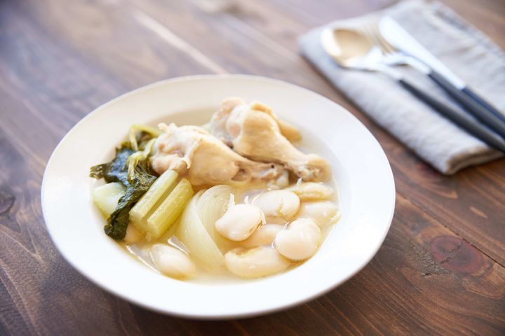香味野菜で旨みたっぷり、白いんげん豆と鶏のスープ