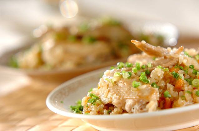 手羽先とこんにゃくを使った、ボリューム満点なピラフのレシピ。米と材料を釜に入れたら、あとは炊飯器におまかせでOK。だし汁と手羽先のうま味を吸った米が絶品ですよ。