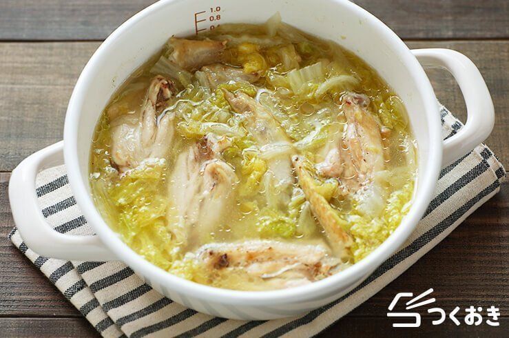 手羽先と白菜がとろっと煮込まれた、ヘルシーなスープレシピです。にんにくとしょうが入りで、体もポカポカと温まります。春雨をプラスして、食べ応えをアップさせるのも◎。