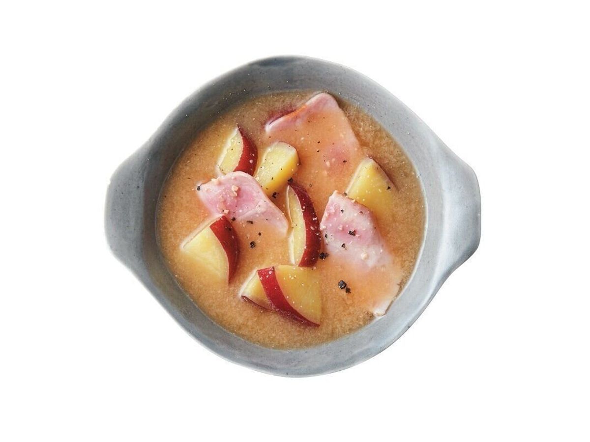 『サンキュ!』2020年11月号の「素材2つで大満足!秋の炊き込みご飯 混ぜご飯 具だくさんみそ汁」よりさつまいもとベーコンのみそ汁をご紹介します。