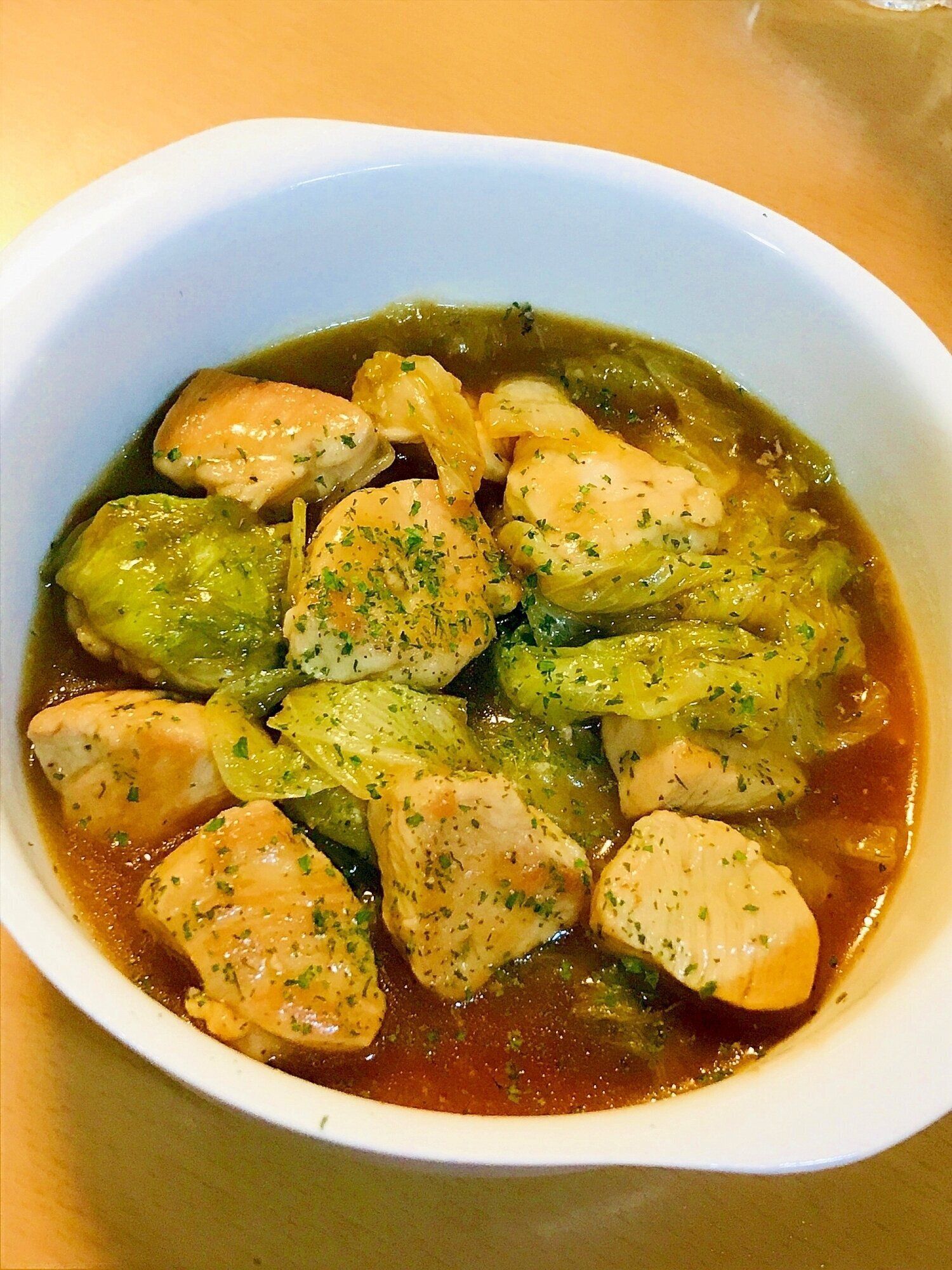 一口鶏肉とたっぷりレタスのあまからソース煮