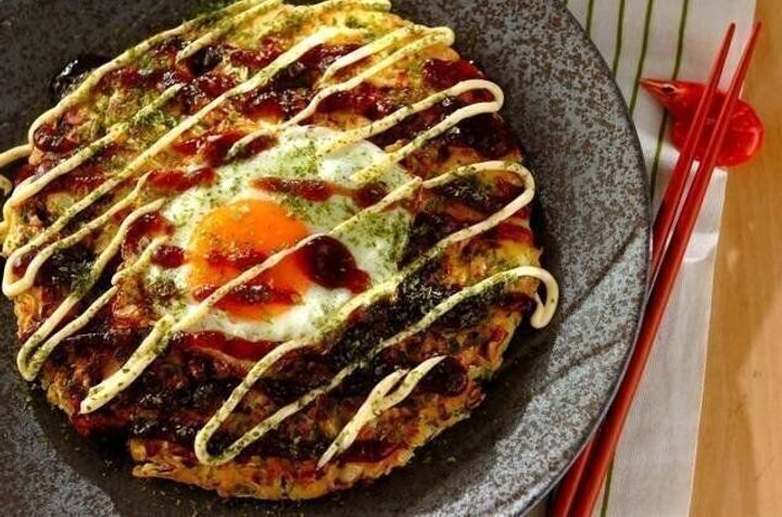 小麦粉と米粉を合わせた生地でつくる、お好み焼きレシピ。長芋と米粉のトロふわ感に、半熟卵のまろやかさが加わってより食べやすい一品に仕上がっています。ソースやマヨネーズをたっぷりかけて、焼きたて熱々を楽しみましょう!
