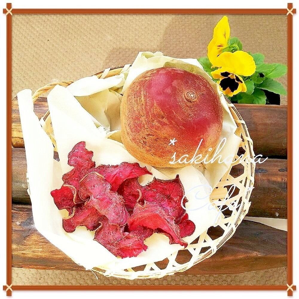 すこし古くなって鮮度の悪くなったビーツを乾燥干しビーツにアレンジしたレシピです。乾燥すれば長期保存できるので、たくさんの料理に活用できます。ミキサーにかけて粉末ビーツをつくっても◎。