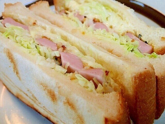 ❤たっぷりキャベツと魚肉ソーセージのホットサンド❤