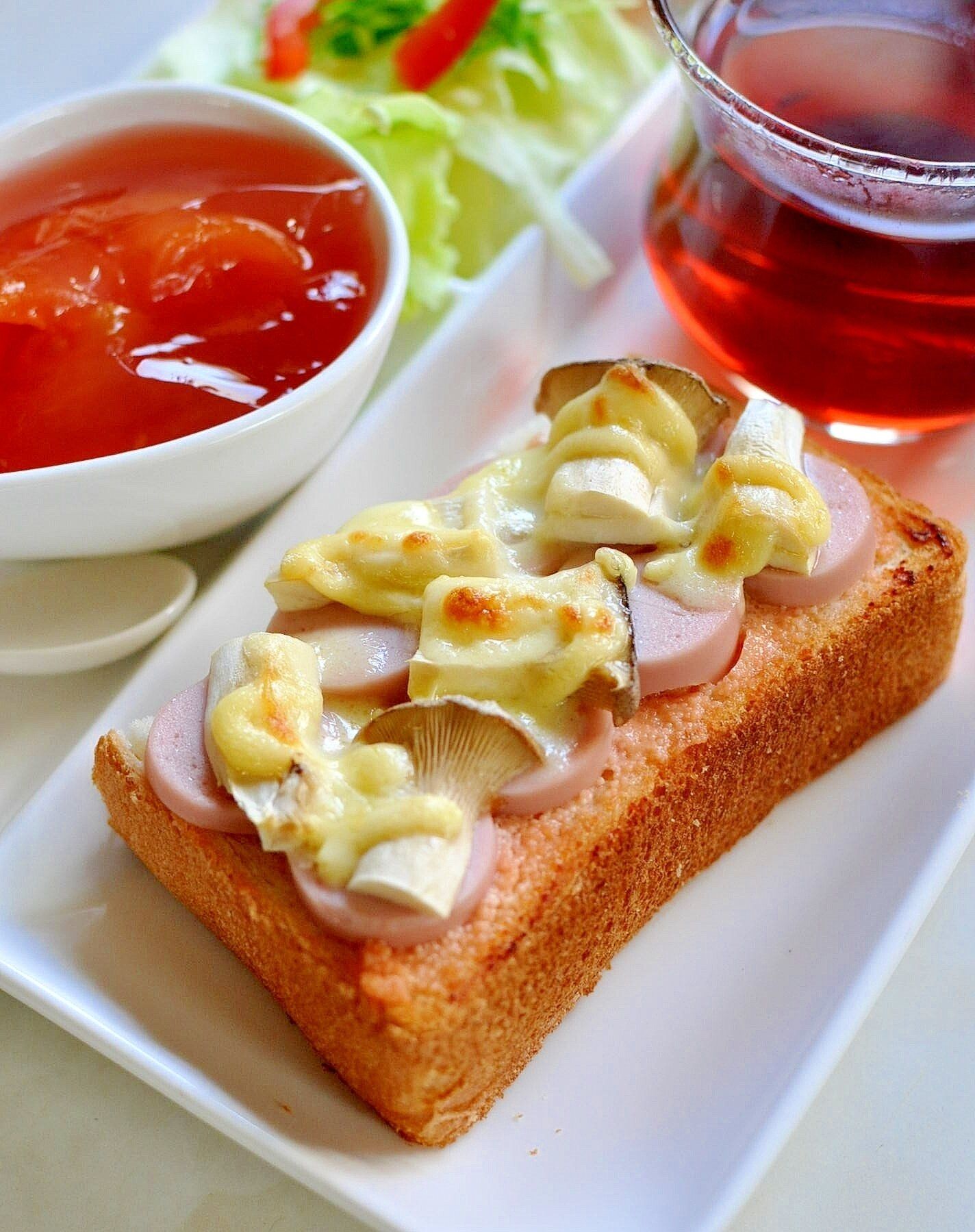 エリンギと魚肉ソーセージをトッピングした明太マヨトーストのレシピ。明太子の香ばしい風味が食欲をそそる一品です。食べ応えがある、少し贅沢なトーストは調理方法も簡単ですよ。