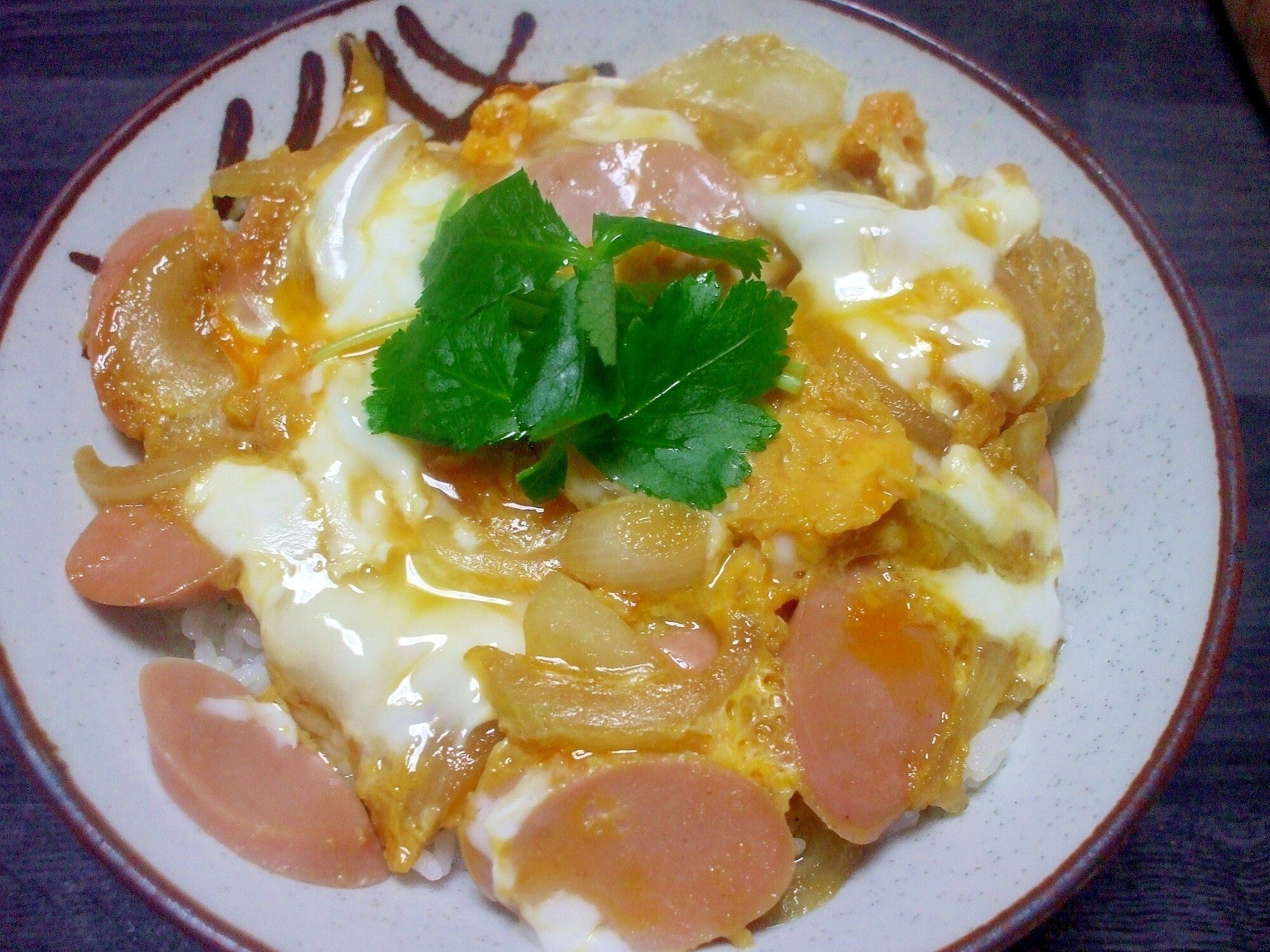 甘辛の濃いめの味が食欲をそそる、魚肉ソーセージを丼にしたレシピです。調理時間10分ほどで手軽につくれる一品です。卵の加熱時間に注意すると、トロトロ感を楽しむことができますよ。