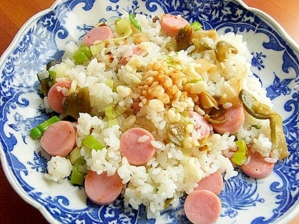 まな板なし♪魚肉ソーセージとザーサイのチャーハン