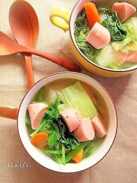 魚肉ソーセージや野菜がごろごろ入った、和風ポトフのレシピ。魚肉ソーセージを入れることで食べごたえもアップし、野菜の栄養もしっかりとれます。寒い日に体を温めてくれそうですね。
