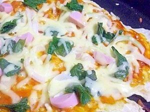 ホットプレートで♪ほうれん草と魚肉ソーセージピザ