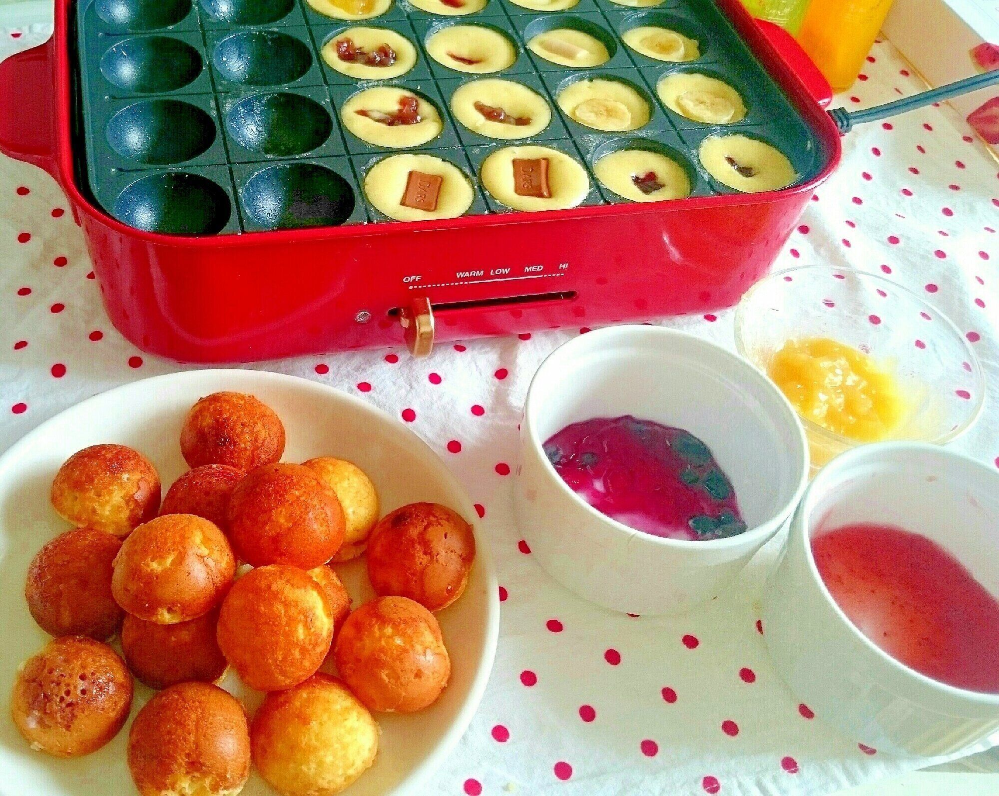 ホームパーティーにもぴったりな、たこ焼き器を使ったベビーカステラのレシピです。中身は魚肉ソーセージをはじめ、お好みの具を入れて楽しんでくださいね。できたては絶品ですよ!