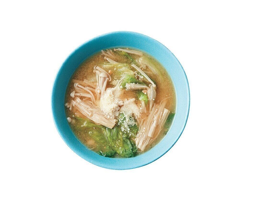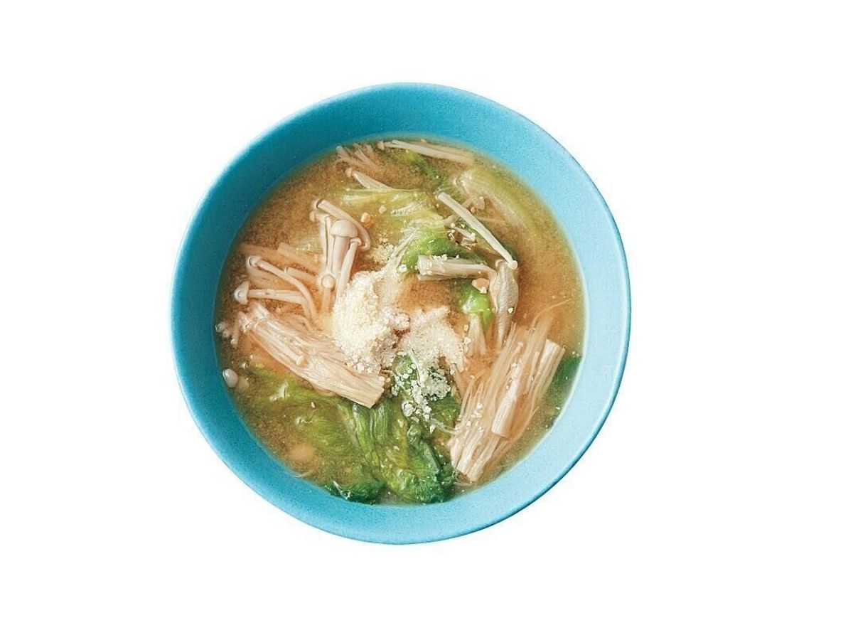 『サンキュ!』2020年11月号の「素材2つで大満足!秋の炊き込みご飯 混ぜご飯 具だくさんみそ汁」よりえのきとレタスのみそ汁をご紹介します。