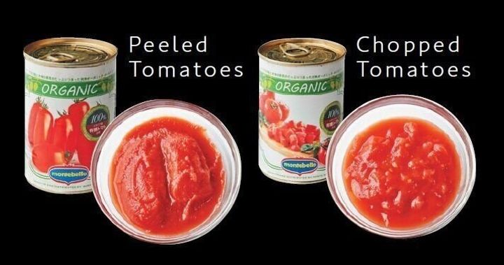 ホールは、酸味が弱く、甘くて濃い味。つぶすと食感が残らない。カットタイプは、あっさりして酸味が強く、煮ても形が残る。という特徴がありますが、どちらも同様に使えます。