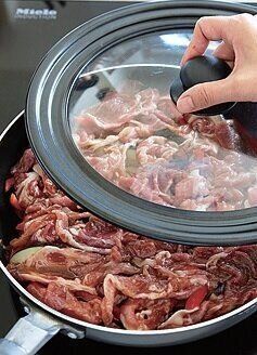 豚肉は[A]をもみ込み、野菜の上に広げてのせる。