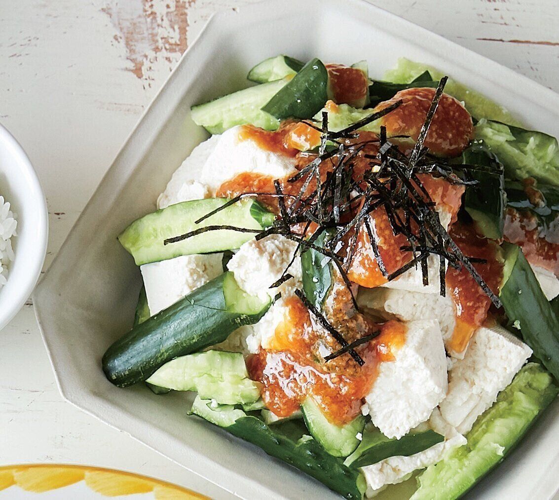 『サンキュ!』2021年1月号の「20分でささっと2品」よりたたききゅうりとちぎり豆腐のサラダをご紹介します。