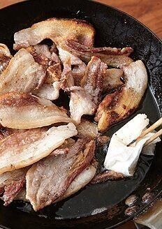 (3)豚肉をカリカリに焼く