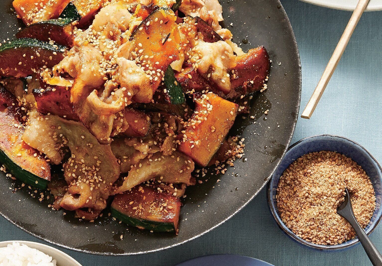 『サンキュ!』2021年1月号の「20分でささっと2品」より豚かぼちゃ炒めごま酢あえをご紹介します。
