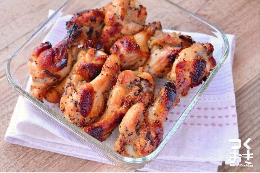 しょうがやブラックペッパーがきいた、ちょっぴりスパイシーな手羽元のグリル。ジューシーな手羽元にしみ込んだ、はちみつ醤油のこっくりとした味わいがたまりません。冷凍保存ができるので、つくり置きおかずにも最適です。