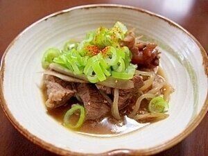 おつまみにぴったりな牛すじ煮込み。とろとろの牛すじとつるっとした糸こんにゃくがよく合い、箸が止まらなくなること間違いなし♪ねぎや一味唐辛子を添えると、彩りもきれいに仕上がります。