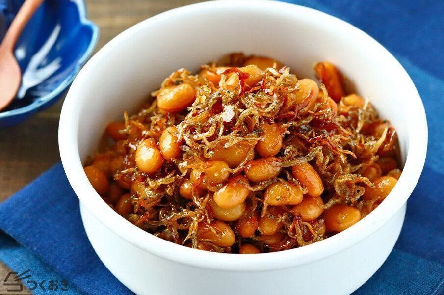 タンパク質などの栄養がとれて、甘めの味つけで食べやすい、大豆とじゃこの甘辛炒め。汁けがなくなるまでしっかり炒めるのがコツですよ。冷蔵で5日ほど日持ちするので、お弁当のおかずにもぴったりです。