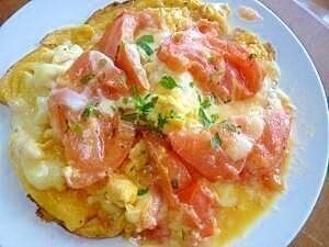 トマトをたっぷり使った、簡単オムレツレシピ。トマトの酸味とチーズの塩気を生かして、シンプルに塩こしょうだけで味つけしましょう。仕上げにイタリアンパセリを散らせば、彩りもきれいに仕上がります。