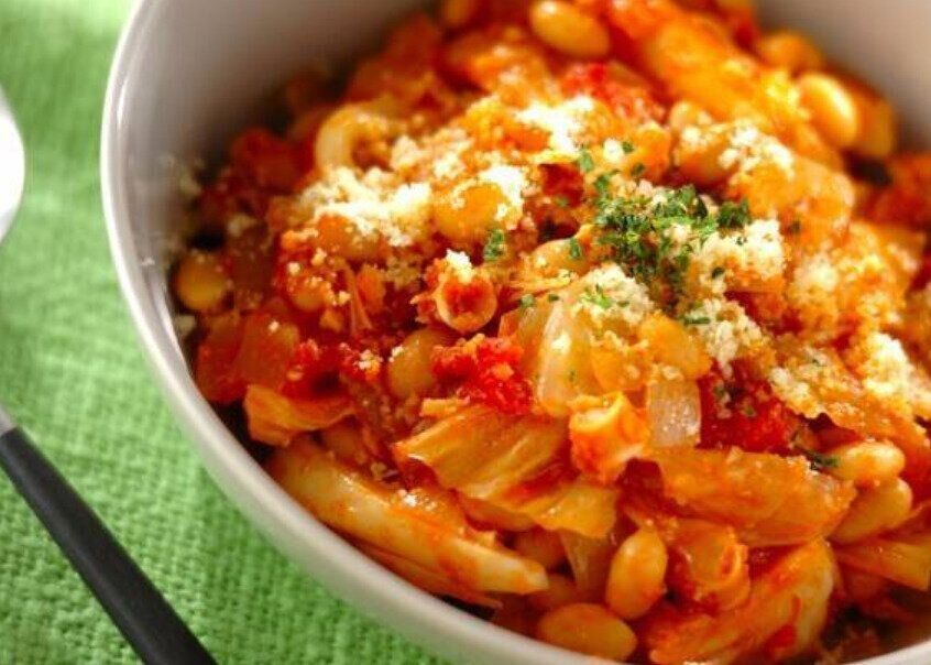 栄養満点!簡単鮭缶と大豆のトマト煮