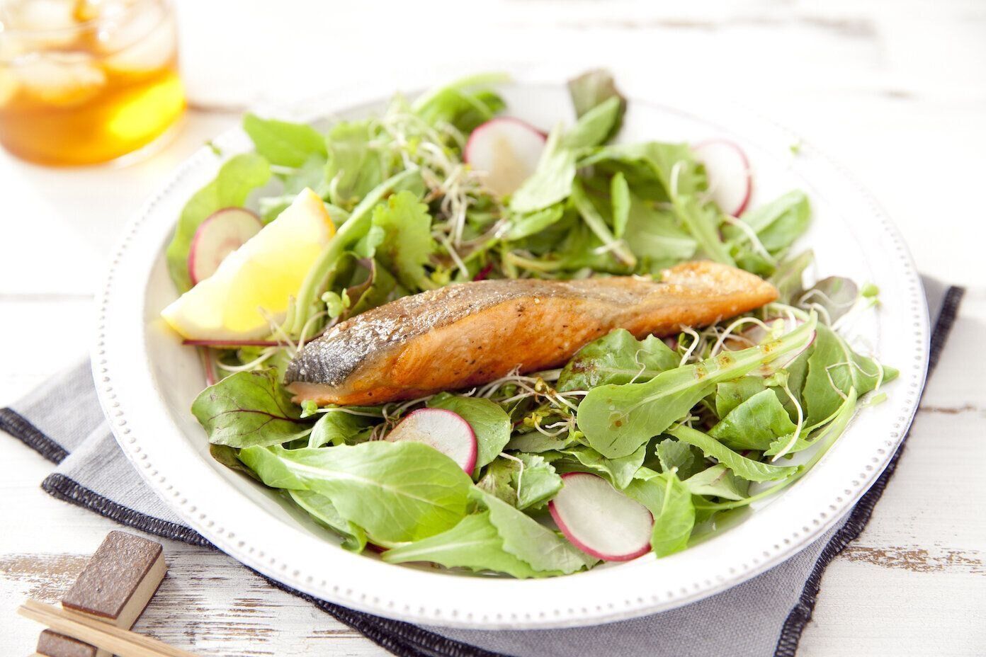 もりもりサラダと鮭のムニエル バター醤油ソース
