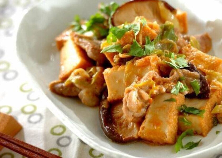 厚揚げと豚小間切れ肉を使った、タンパク質が豊富な炒めものレシピです。合わせみそで味付けをして、和食のメインにぴったりのご飯がすすむ一品に!お好みでパクチーを散らして、香りをプラスするのもおすすめです。