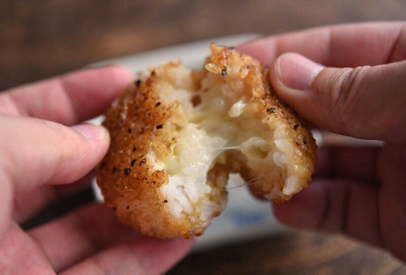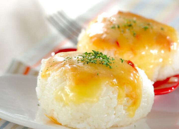 おにぎりの中にピザ用チーズを入れて、香ばしく焼き上げたレシピ。とろりとしたチーズ、ピリッとスパイシーな黒こしょうが調和して、クセになるおいしさです。好みでかつお節を混ぜて焼いても◎。