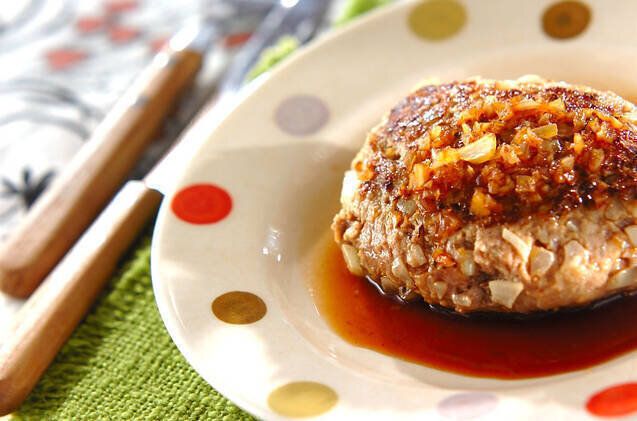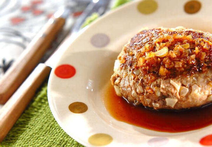 ポン酢や玉ねぎを使ったさっぱりめのソースで味わう、チーズハンバーグのレシピです。チーズをたっぷり入れてコク深い味わいを楽しむのもおすすめです。和食のメインにいかがでしょうか。