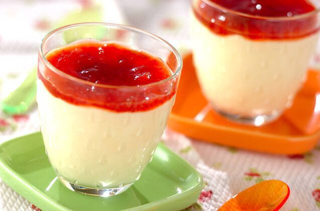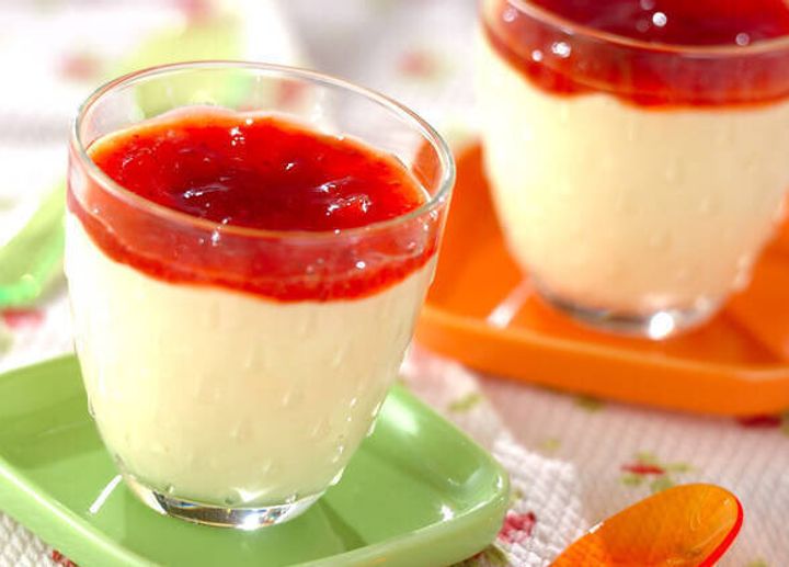 クリームチーズの風味と、メレンゲのふんわり感を味わえるチーズムース。イチゴジャムを使ったソースと、ムースの組み合わせで見た目もかわいく、お家で楽しむデザートにおすすめです。