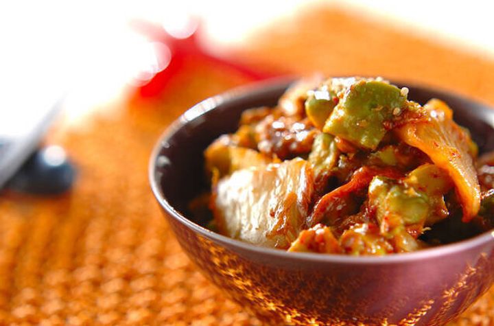 キムチのピリ辛風味と、アボカド&チーズのまろやかさを味わえる、 アボカドキムチーズ。調理時間約5分と手軽につくれて、副菜やおつまみにもよさそうです!