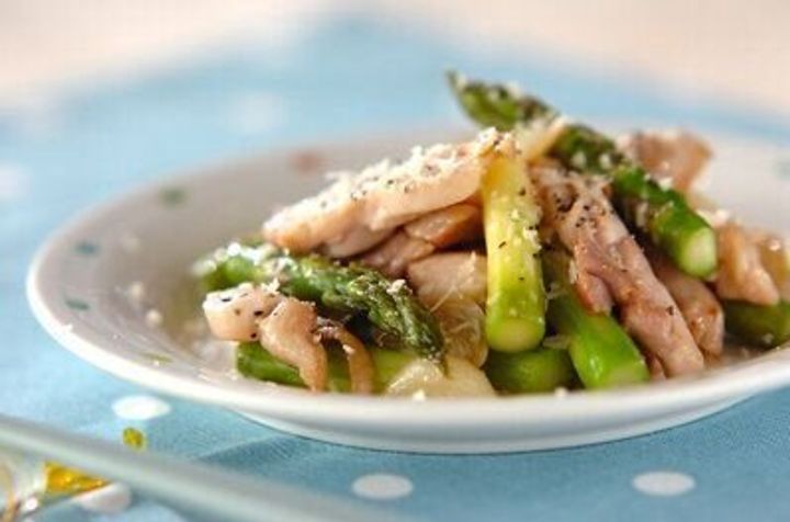 アスパラとベーコン、チーズの相性が抜群の一品です。パルメザンチーズは、食べる直前にすりおろすことが香り高くおいしく仕上げるポイントです。