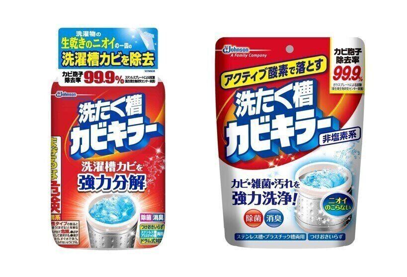 左:洗たく槽カビキラー(塩素系 550g)/ジョンソン