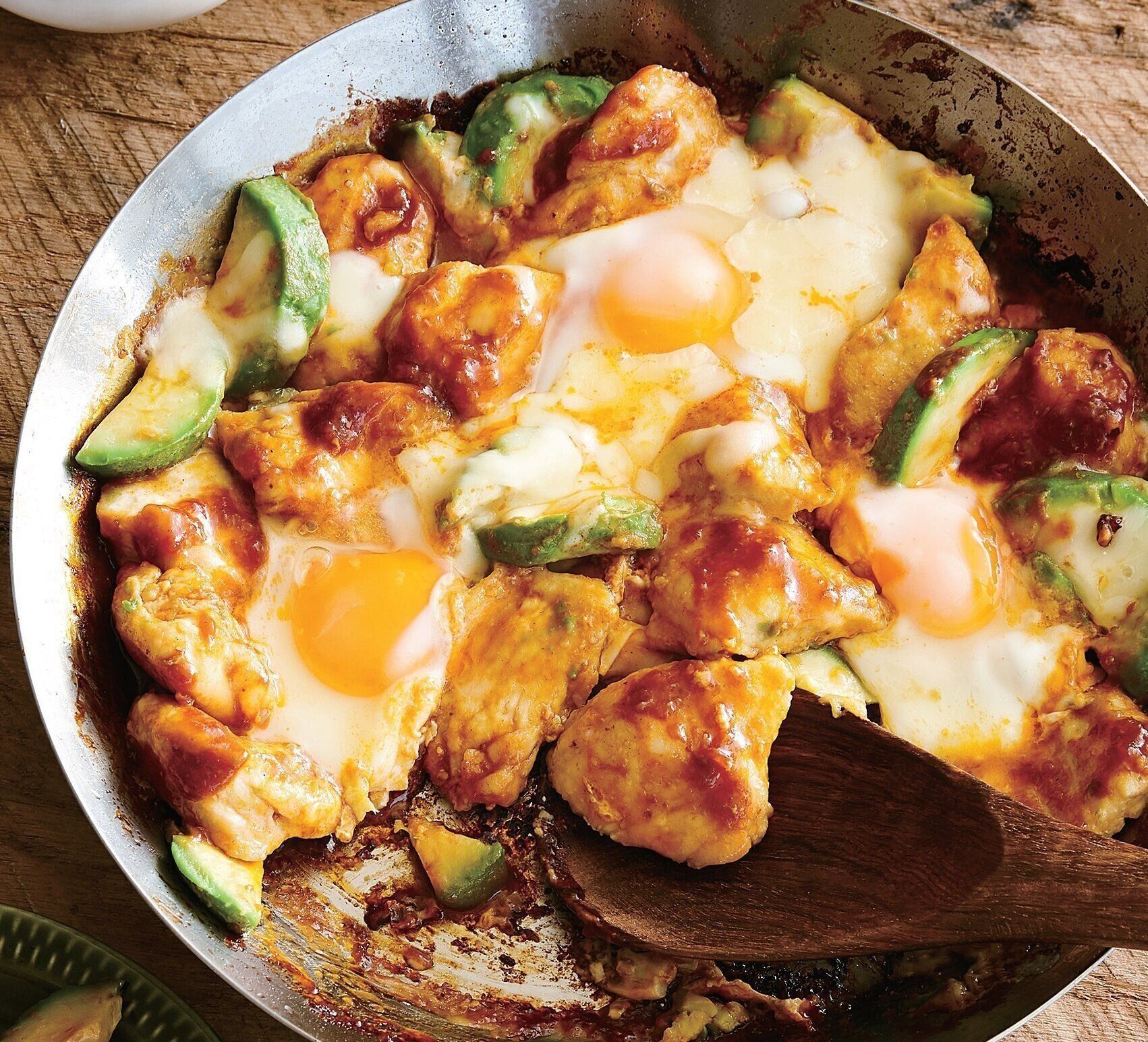 『サンキュ!』2021年1月号の「20分でささっと2品」よりアボカドBBQエッグチキンをご紹介します。