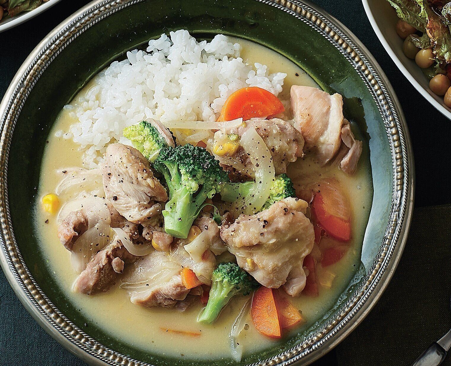 『サンキュ!』2021年1月号の「20分でささっと2品」より鶏肉のコーンクリームシチューをご紹介します。