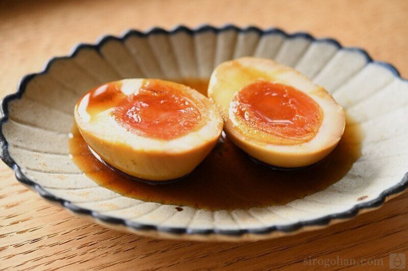 味玉といえば醤油ベースの味つけが一般的ですが、こちらはたれをアレンジしてカレー風味の味玉なんです。卵の濃厚さとスパイシーなカレーが相性抜群です。