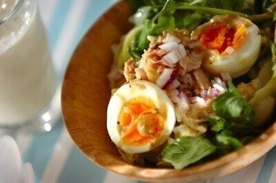 ご家庭にある材料だけで簡単につくれるレシピです。簡単なのに栄養満点!ツナとたまごにあう手作りドレッシングがおいしさの秘密。