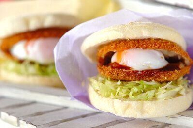 コロッケに切り込みを入れて、そこに温泉卵とソースを挟んだレシピ。見た目も華やかで食べ応え抜群です。とろとろ温泉卵との相性ばっちりなレシピです。