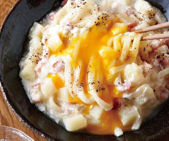 じゃがいもとベーコンのカルボナーラ風うどん
